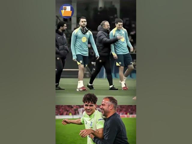 Flick y Cubarsí jugando en el entreno de hoy