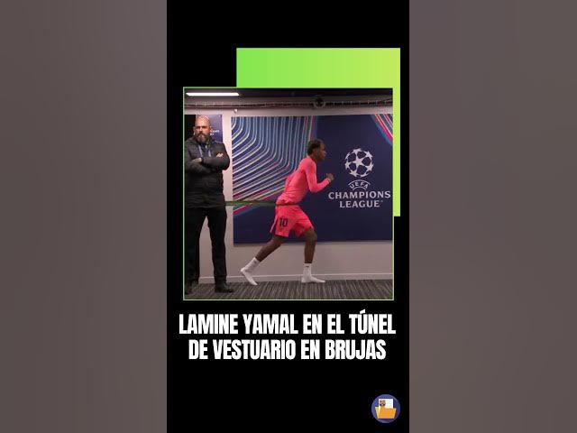 Lamine Yamal realiza un calentamiento en el túnel de vestuario